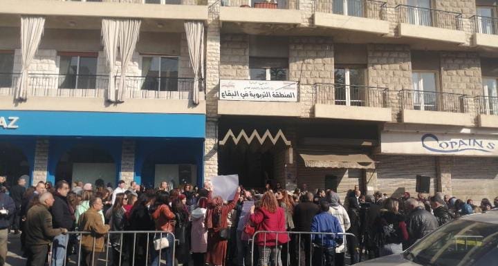 نفّذَ أساتذة التعليم الرسمي، اعتصامًا، أمام مركز المنطقة التربوية في دورس بعلبك رفضًا للمشاريع المشبوهة والخضوع للدول المانحة وتعليمات صندوق النقد الدولي وإذلال المعلم.