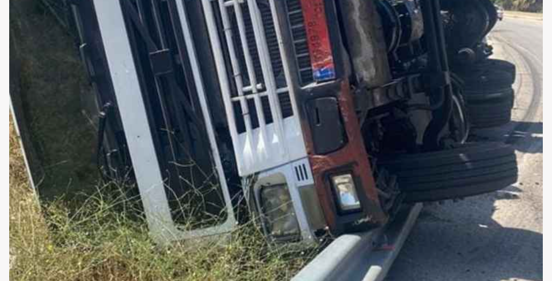 انقلاب شاحنة على اتوستراد النبطية وإصابة سائقها بشكل طفيف