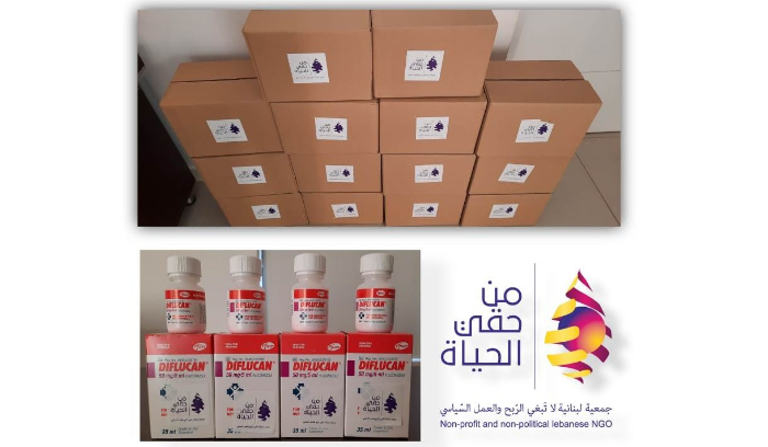 أعلنت جمعيّةُ "من حقّي الحياة " في بيانٍ ،أنها "وزعت ٤٣٠ حنجور دواء Diflucan 50 mg، على المراكز الصحيّة والمستوصفات التالية: مستشفى مار مخايل...