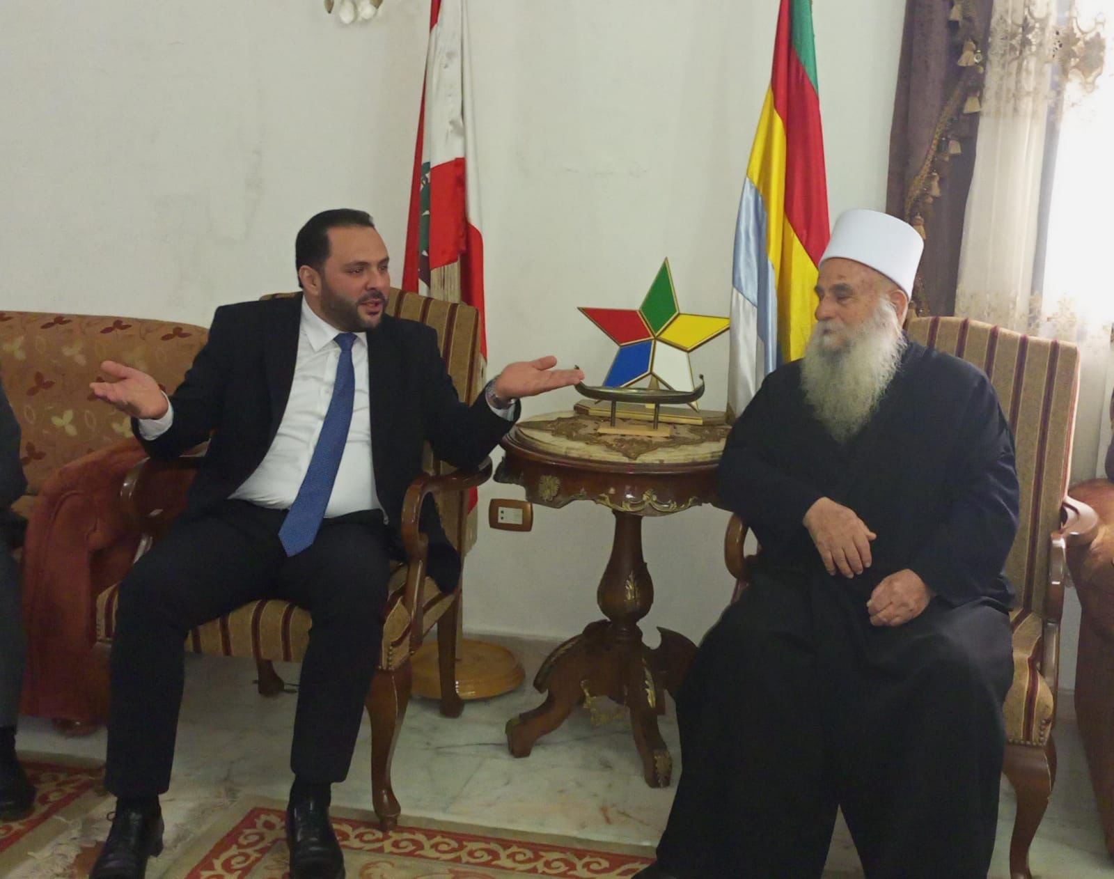زار الأمين العام لحزب البعث العربي الإشتراكي علي يوسف حجازي يرافقه أعضاء من القيادة المركزية للحزب دارة شيخ عقل طائفة الموحدين الدروز الشيخ نصر الدين الغريب في بلدته كفرمتى.