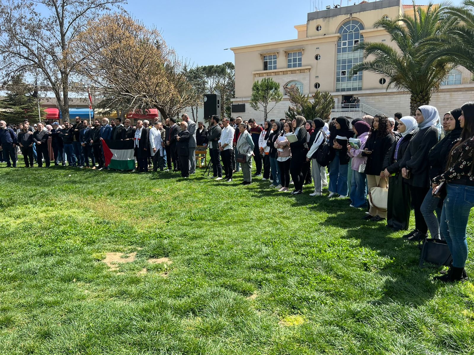 نظّم النَّادي الثَّقافي الفلسطيني وقفةً تضامنيَّةً مع الشَّعب الفلسطينيّ في حرم الجامعة اللُّبنانيَّة الدّوليّة اليوم، بمشاركة طلابيّة وأكاديميّة وتربوية وسط هتافات داعمة للقضية الفلسطينية.
