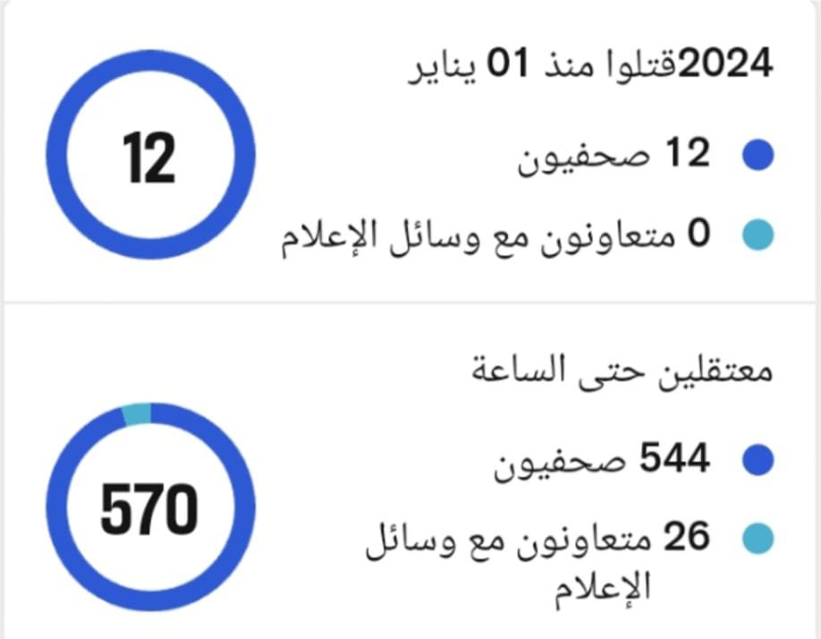 وأرفق التقرير بيانات تشير إلى عدد الصحفيين الذين قتلوا واعتقلوا من ١ يناير ٢٠٢٤.