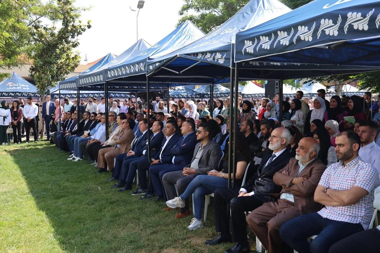 كلمة المنظمين ألقاها الدكتور طارق الهاشم الذي قال "إن الهدف من المعرض هو ربط طلاب الجامعة خصوصًا الخريجين بسوق العمل، والمساهمة في تأمين فرص حقيقية لهم عبر التواصل مع المؤسسات الناجحة في وطننا، مؤكداً أن التكامل بين الجامعة وسوق العمل ضروري لصنع جيل يؤمن برسالة الغد الأفضل التي أرسى دعائمها رئيس الجامعة النائب السابق عبد الرحيم مراد الذي يكمل مسيرته نجله النائب حسن مراد".