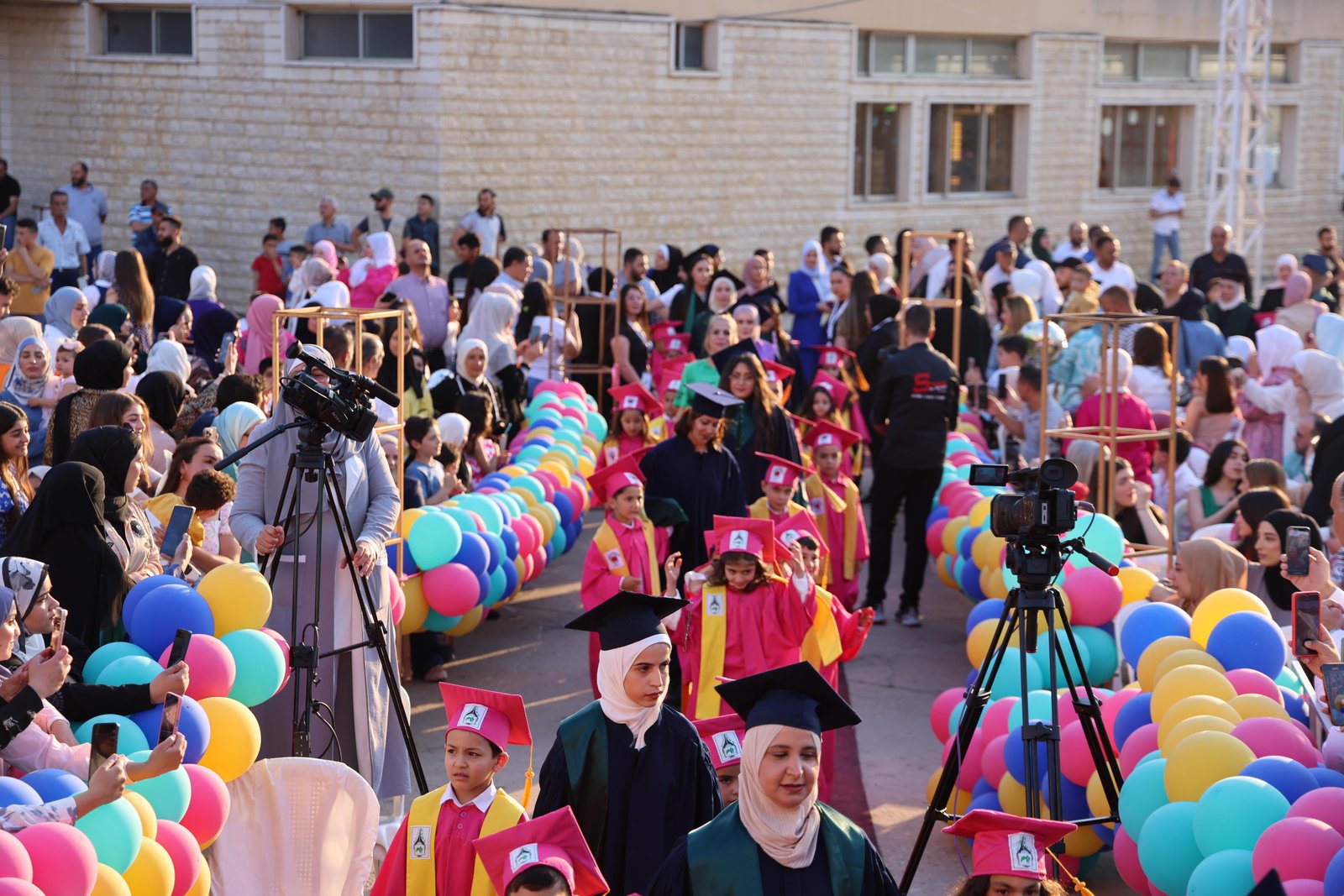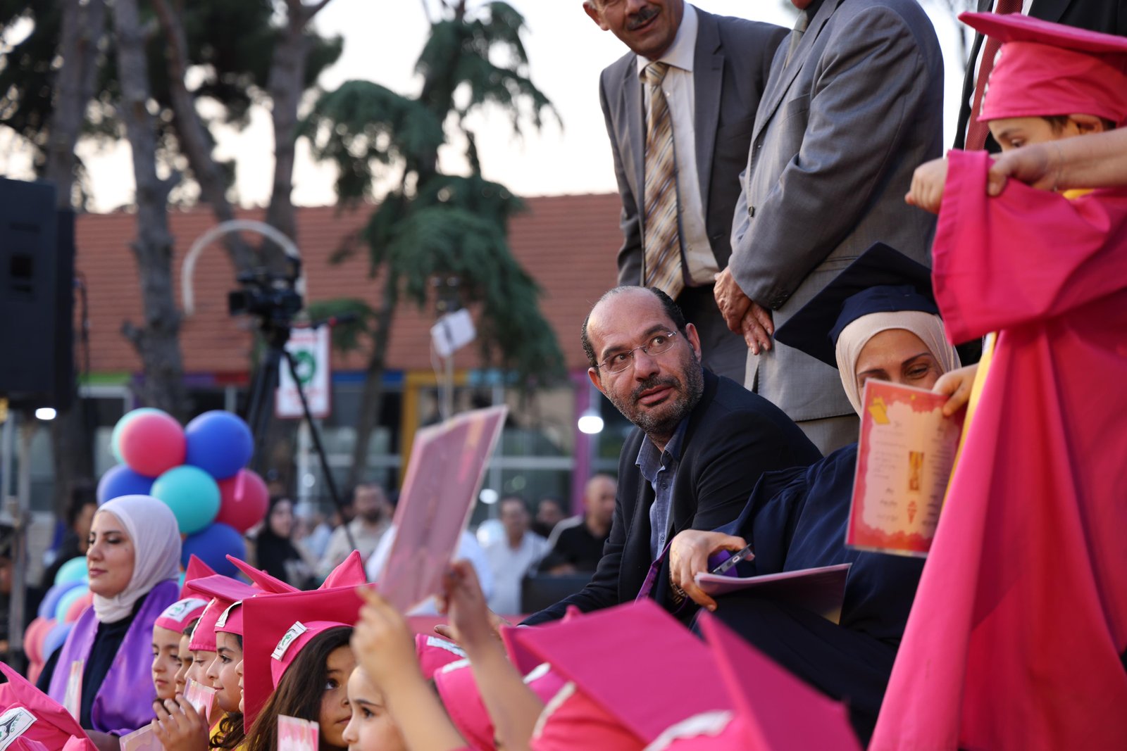 وقال مراد خلال الحفل الذي تخللته عروض مسرحية راقصة: إن الجيل الجديد يستحق أن يعيش في ظروف أفضل، ويكبر بأمان، كما سيكبر أطفال فلسطين الذين سيبنون دولتهم وعاصمتها القدس بصلابتهم وشجاعتهم وبالحق الذي يتمسكون به، مهنئا الطلاب وذويهم لمناسبة تخرج أبنائهم. واختتم الحفل بتوزريع الشهادات على الأطفال الخريحين.