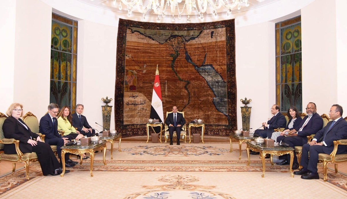 وبحث السيسي مع وزير الخارجية الأميركي أنتوني بلينكن في "آخر تطوّرات الجهود المشتركة للتوصّل إلى وقف لإطلاق النار بقطاع غزة وتبادل الأسرى والمحتجزين ومناقشة الجهود المصرية لإنفاذ المساعدات الإنسانية لأهالي غزة".