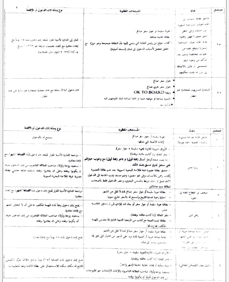 وأعلنت المديرية العامة للأمن العام عن تعديل شروط الدخول للرعايا السوريين الى لبنان وفقاً للجداول المرفقة:
