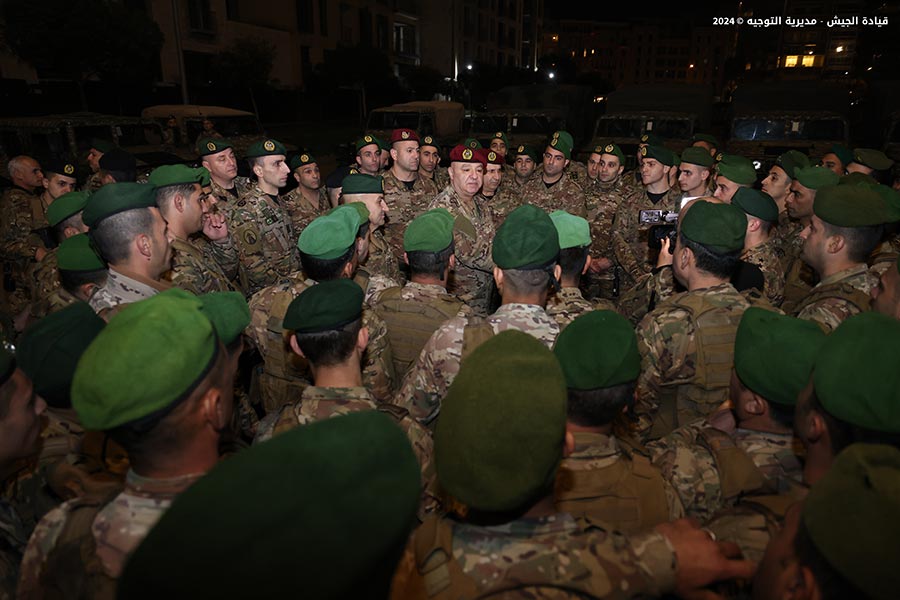 وجال على عسكريي فوج التدخل الثالث المنتشرين في منطقة وسط بيروت، مطلعًا على الإجراءات المتخَذة للحفاظ على الأمن والاستقرار خلال فترة الأعياد، ومؤكدًا أن "تضحيات الجيش أنقذت لبنان من الأزمات الخطيرة التي مر بها".