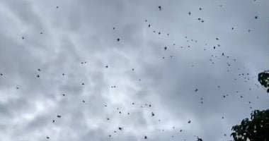 وأضاف: "في الفيديو يبدو أن الحشرات شكلت شبكة عنكبوتية عملاقة للتكاثر، حيث تقف على أسطح مرتفعة (مثل الأشجار) وتطلق خيوطًا حريرية في الهواء، وعندما تلتقط الرياح هذه الخيوط، ترفع العناكب في الهواء، مما يسمح لها بالانتقال من مكان إلى آخر.. وعندما تطلق هذه العناكب خيوطها في نفس الوقت، يبدو المشهد وكأن "السماء تمطر عناكب".