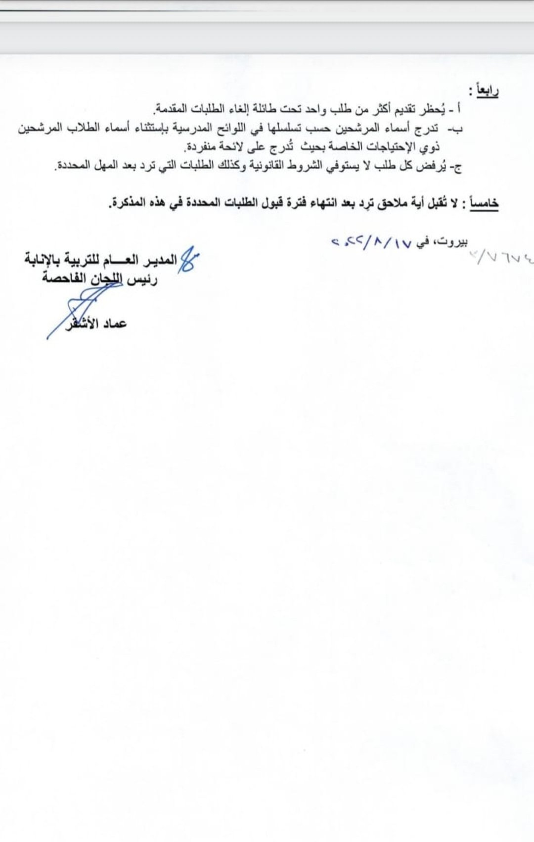 أعلنت وزارة التربية والتعليم العالي عن مواعيد قبول طلبات الترشيح للامتحانات الرسمية للدورة الاستثنائية للعام ٢٠٢٢ للشهادة المتوسطة وشهادة الثانوية العامة بفروعها الأربعة.