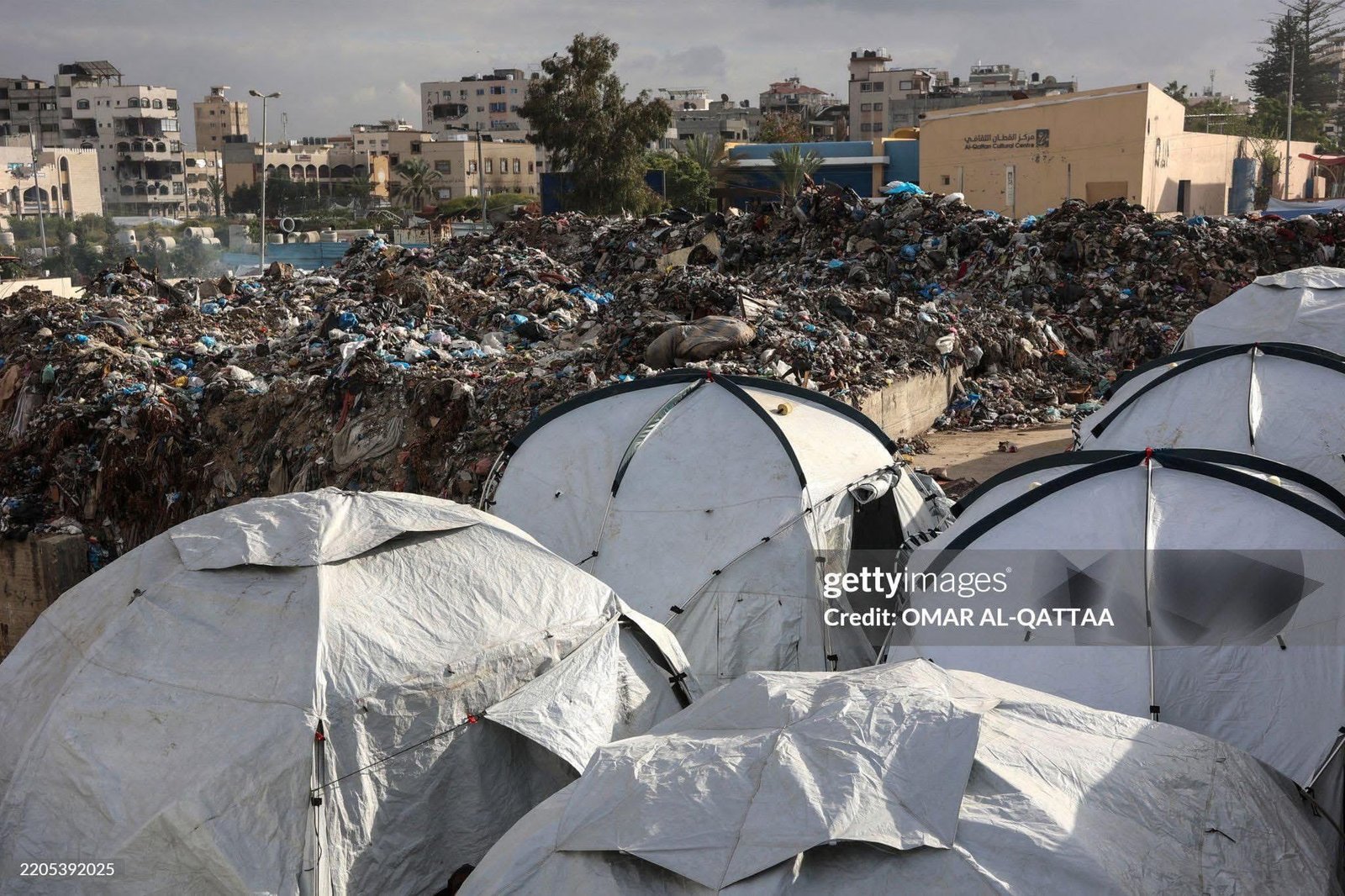 لم يجد نازحو غزة مكانًا يحتميهم، فلجأوا إلى نصب خيامهم وسط مكب للنفايات، بجانب أكوام القمامة، بالقرب من ملعب اليرموك في مدينة غزة.
