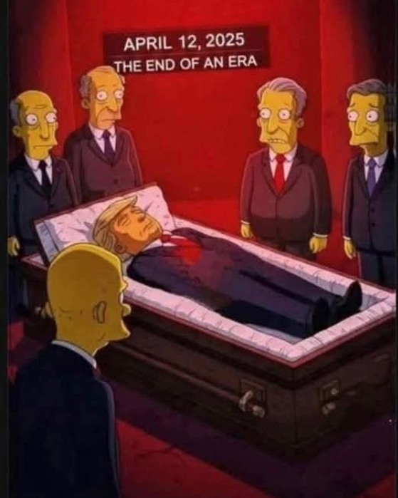 انتشر على وسائل التواصل الاجتماعي فيديو يُزعم أنه مشهد من المسلسل الشهير "ذا سيمبسون"، حيث يُتوقع وفاة الرئيس الأمريكي دونالد ترامب في 12 نيسان 2025. يظهر في الفيديو شخصية تشبه ترامب في نعش محاط بالمعزّين، مما أثار المخاوف بسبب تطابقه مع نبوءات سابقة للمسلسل.