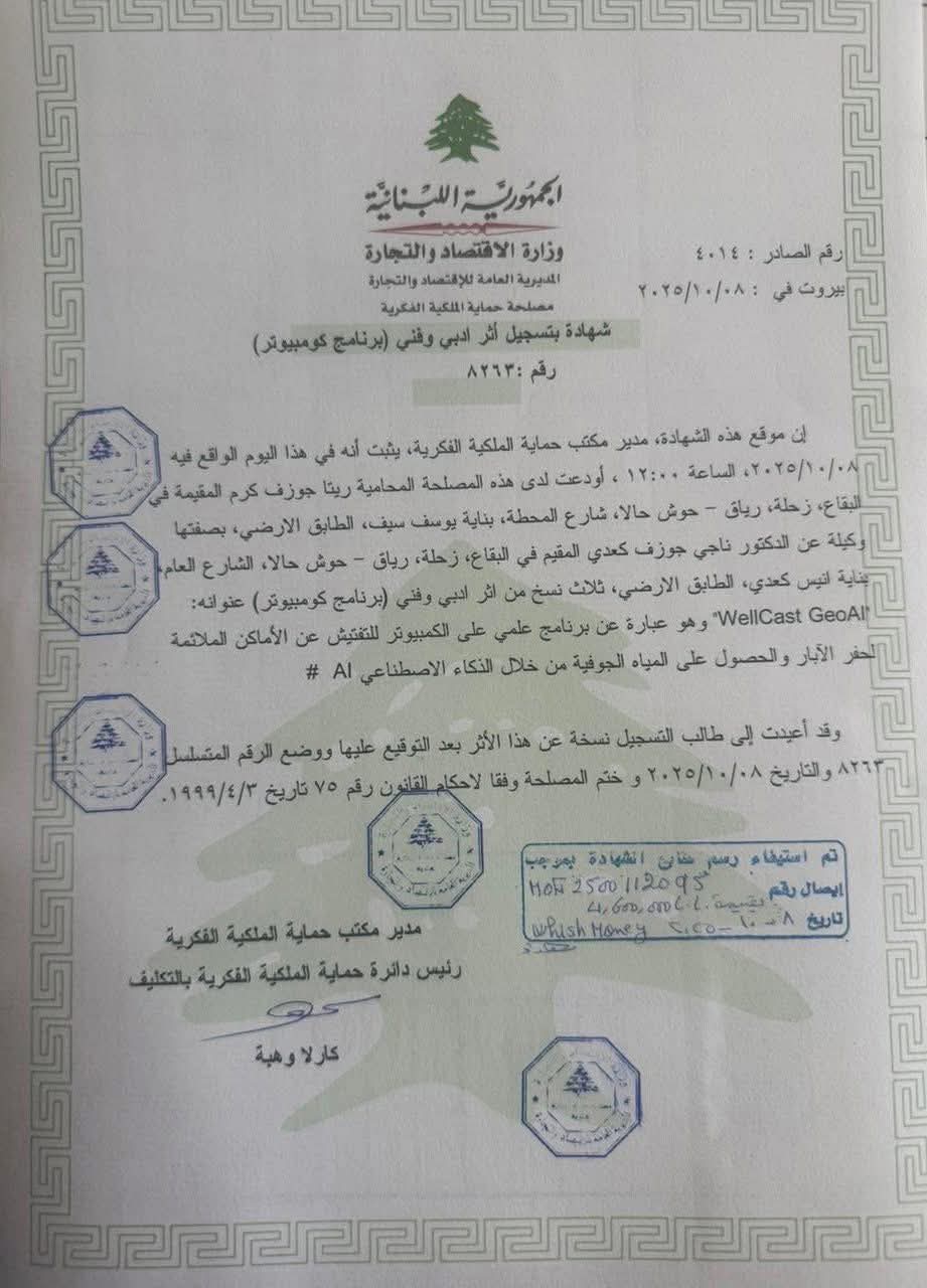 البرنامج هو الأوّل من نوعة، اسمه WellCast ويهدف إلى التفتيش عن المواقع التي تحتوي على المياه الجوفية وحفر الآبار، من خلال استخدام الذكاء الاصطناعي الأكثر دقة.