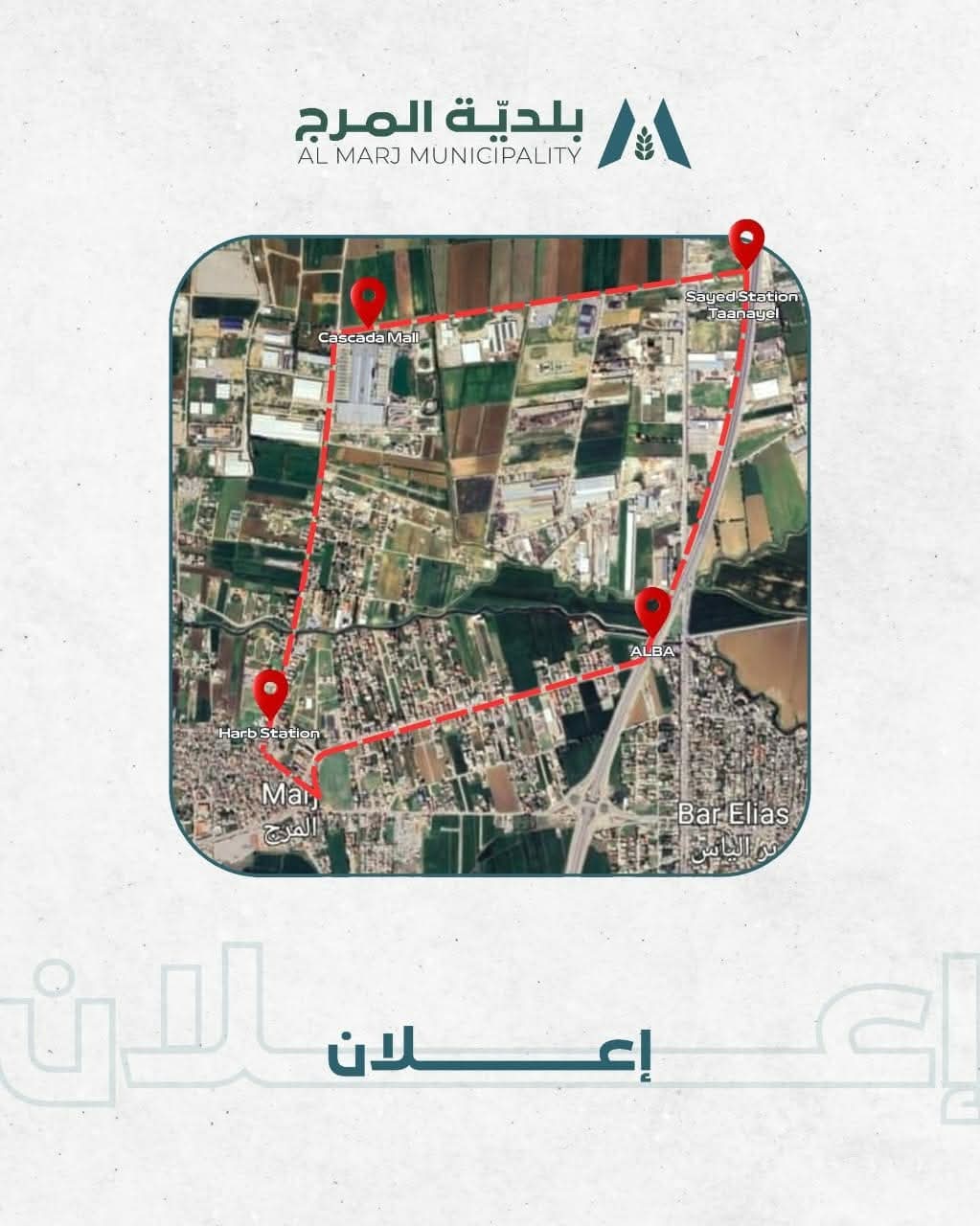 أعلنت بلدية المرج - البقاع، في بيان، أنه سيتم إقفال الطريق المؤدي إلى مسار سباق "لِ بلدتي الأول" يوم الأحد 12 تشرين الأول 2025، من الساعة العاشرة صباحًا حتى الثانية بعد الظهر، وذلك حرصًا على سلامة المشاركين.