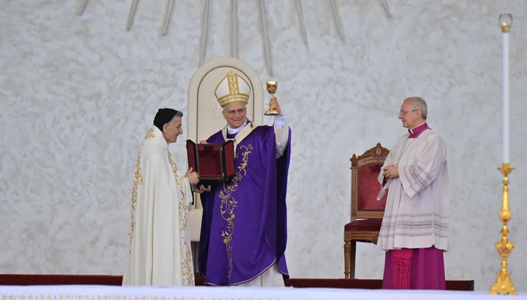 وقدم البابا لاوون الرابع عشر، بعد انتهاء القداس الإلهي، وبعد كلمة شكر ألقاها البطريرك الماروني مار بشارة بطرس الراعي، هدية عبارة عن كأس القربان.