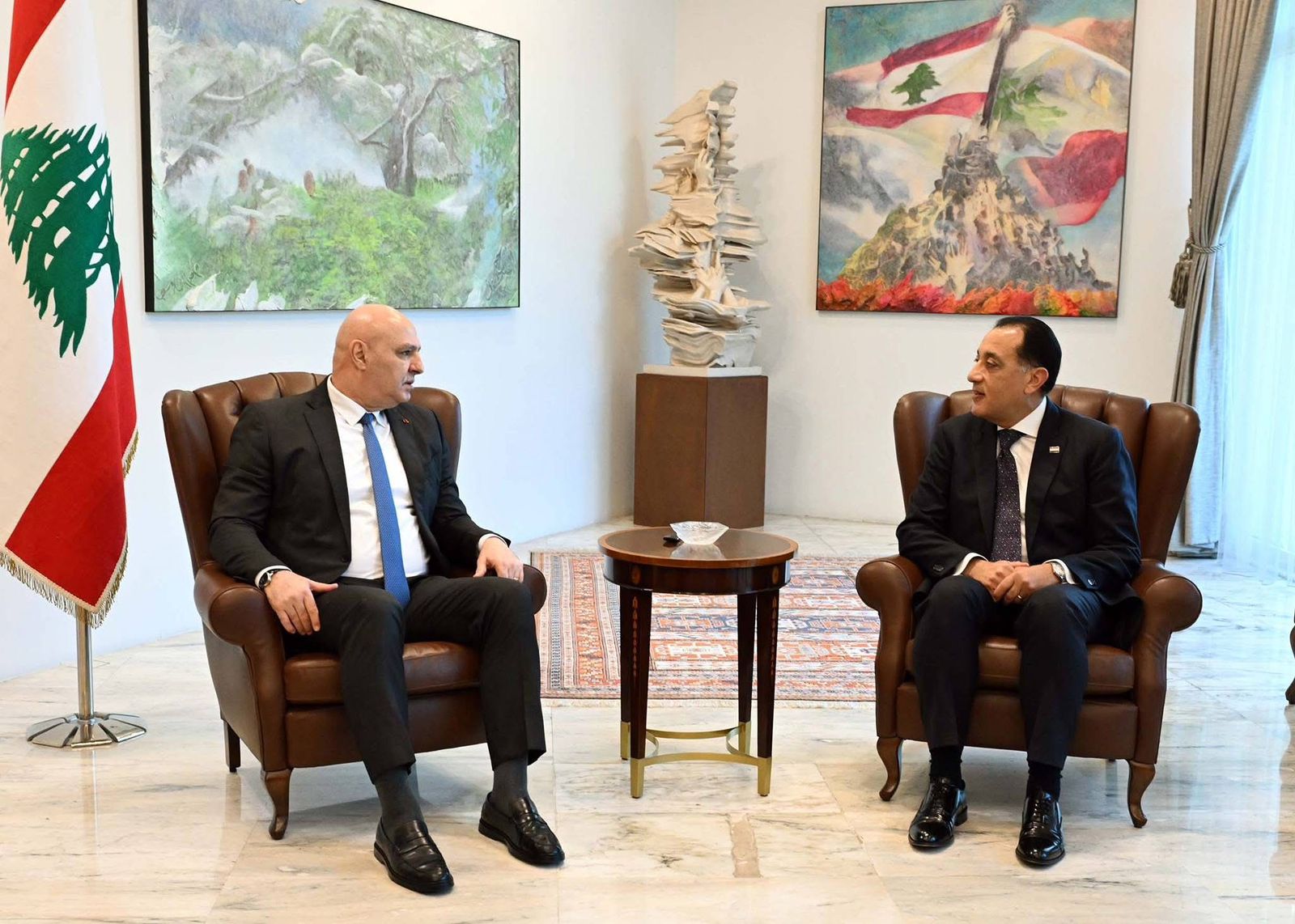 كلام الرئيس عون جاء خلال لقائه رئيس الوزراء المصري الدكتور مصطفى مدبولي والوفد الوزاري والدبلوماسي المرافق، قبل ظهر اليوم في قصر بعبدا، بحضور وزير الصناعة جو عيسى الخوري، والسفير المصري في لبنان علاء موسى، والسفير اللبناني لدى مصر علي الحلبي، حيث نقل الدكتور مدبولي دعم الرئيس المصري عبد الفتاح السيسي للرئيس عون في كل ما يبذله والحكومة اللبنانية من جهود لتحقيق استقرار وأمن لبنان، مشددًا على أن بلاده لن تألو جهدًا في هذا الإطار.
