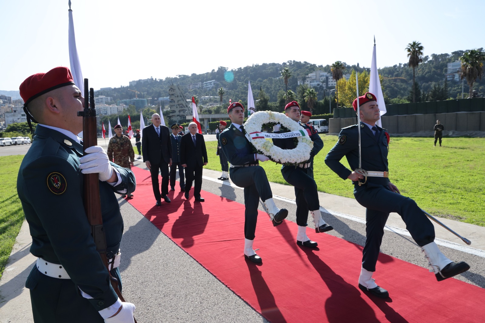 وجرى خلال اللقاء عرض للأوضاع العامة في البلاد، ولا سيّما الوضع في جنوب لبنان، حيث أكد وزير الدفاع الإيطالي التزام بلاده الثابت بدعم المؤسسة العسكرية اللبنانية، سواء بشكل مباشر أو من خلال الوحدة الإيطالية العاملة في إطار اليونيفيل، معتبرًا هذا الدعم "خطوة أساسية ليس فقط لتعزيز حضور القوى الشرعية في الجنوب، بل لتثبيت الأمن والاستقرار في المنطقة ككل".