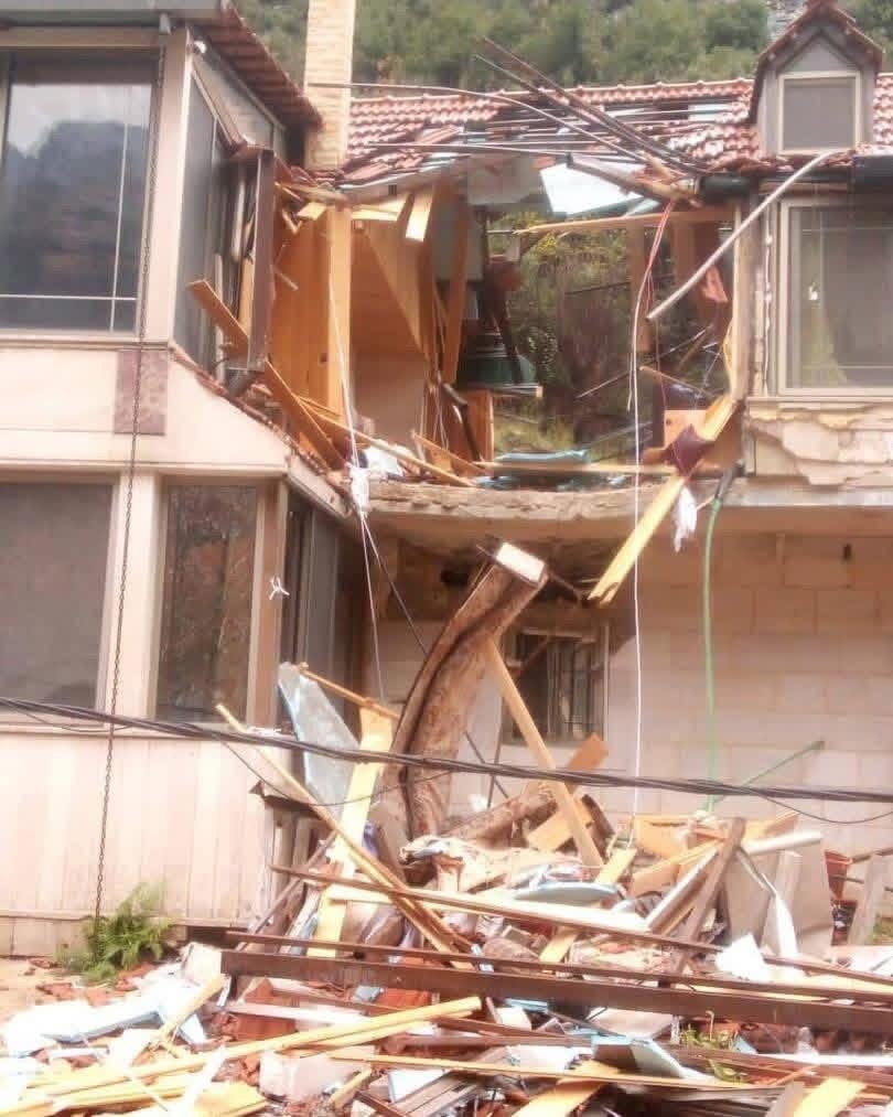 مع اشتداد العاصفة في لبنان، اجتاحت صخرة كبيرة منزل مواطن في بلدة تنورين التحتا، ما أدى إلى انهيار جزء كبير من المنزل.