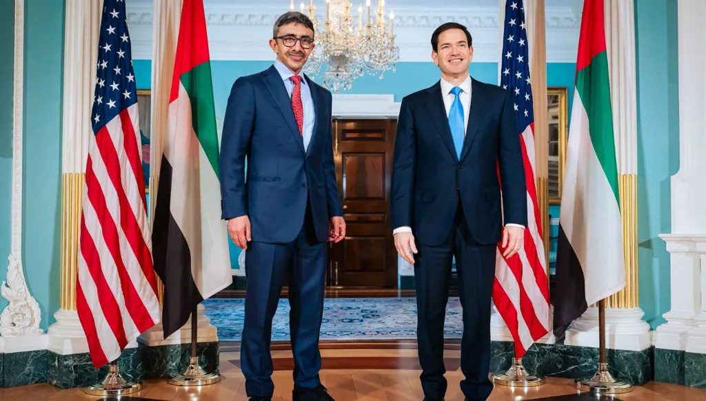 أعلنت وكالة أنباء الإمارات أن وزير الخارجية الشيخ عبد الله بن زايد تلقّى اتصالاً هاتفياً من نظيره الأميركي ماركو روبيو، جرى خلاله بحث التطورات الإقليمية، ولا سيما الأوضاع في اليمن وغزة.