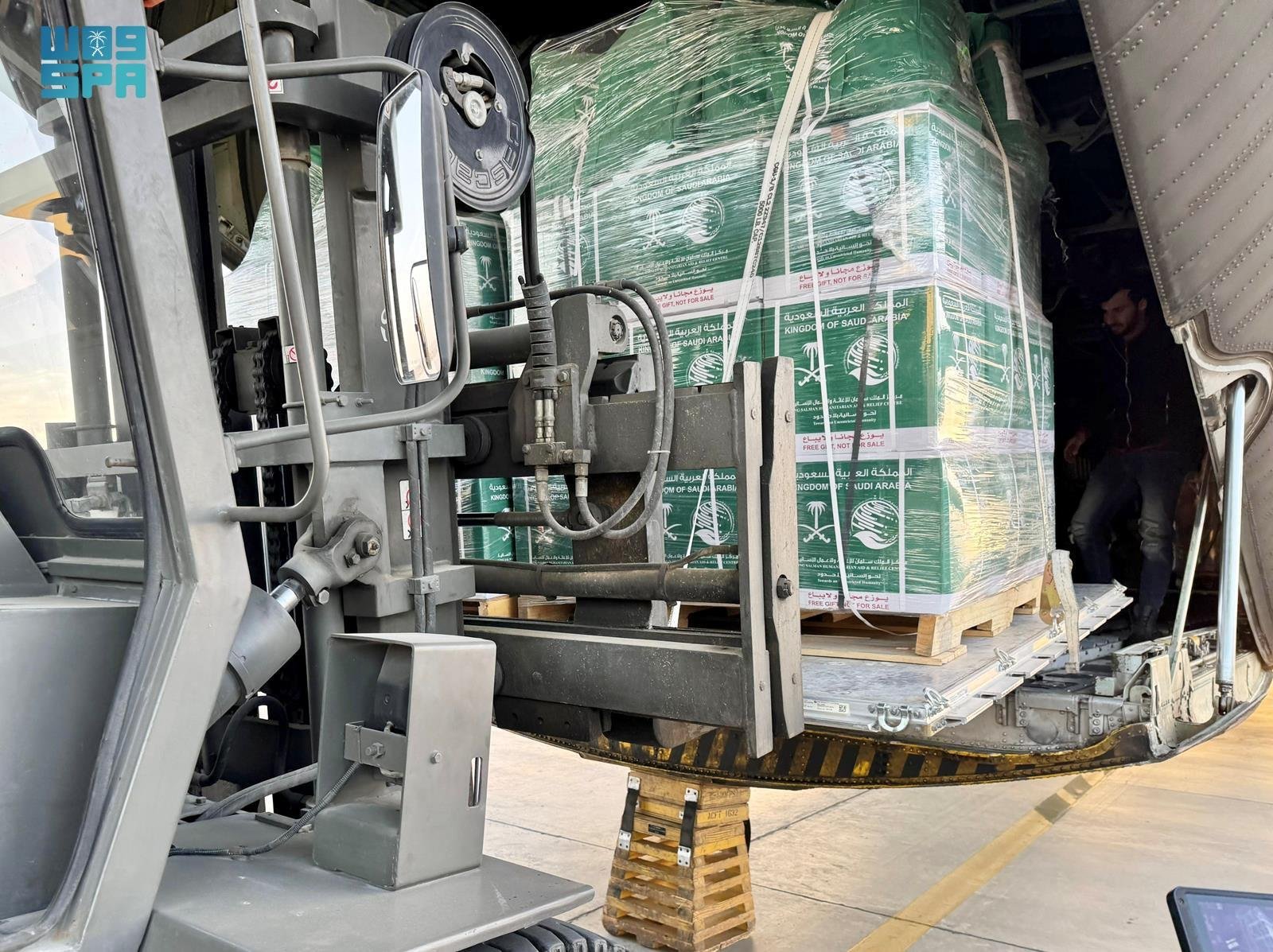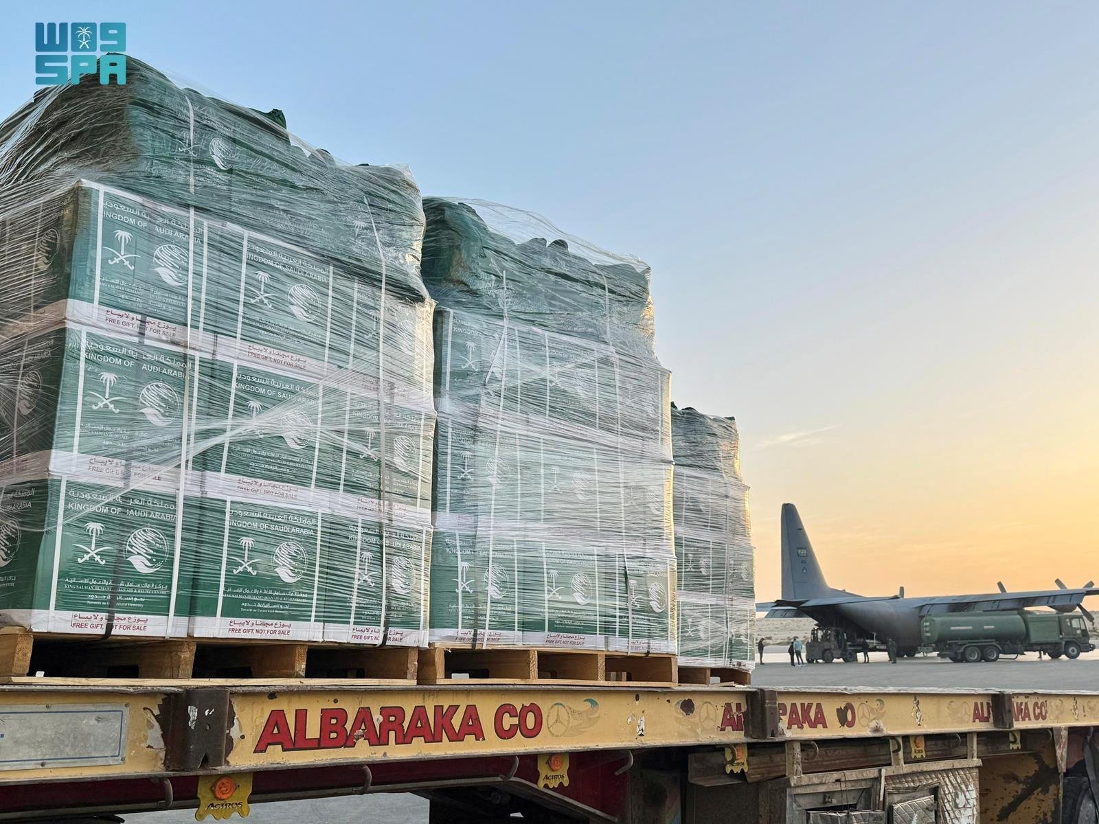 وتحمل الطائرة السعودية الـ(80) على متنها سلالًا غذائية وحقائب إيوائية، تمهيدًا لنقلها إلى المتضررين من الشعب الفلسطيني داخل قطاع غزة.