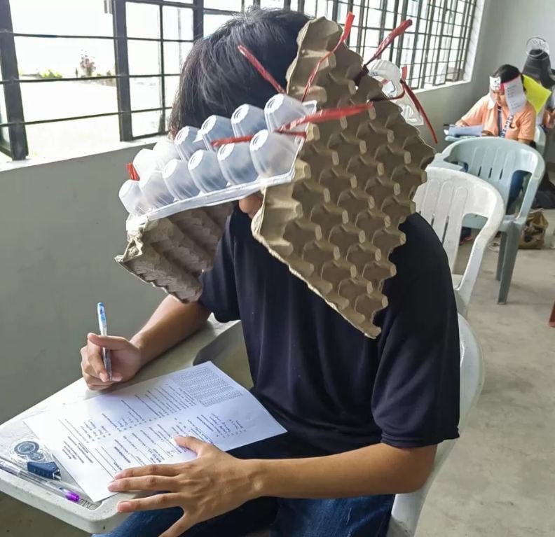 أثارت صور تم تداولها على نطاق واسع بمواقع التواصل الاجتماعي لطلاب في الفلبين يضعون قبعات لمنع الغش في الامتحانات، الكثير من الدهشة والتندر.