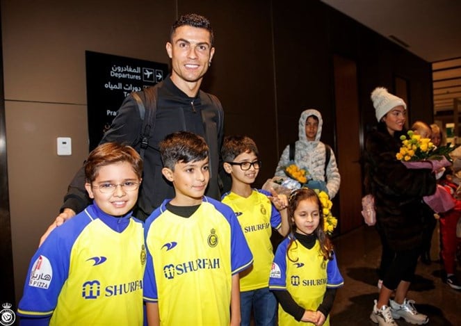 واستقبلَ أطفال من مشجعين "العالمي" المهاجم البرتغالي وصديقته جورجينا رودريغيز وأطفاله والوفد الذي بصحبتهم بالورود، إلى جانب حضور عدد من أعضاء مجلس إدارة النادي السعوديّ، وذلك في صالةِ مطار الملك خالد الدوليّ.