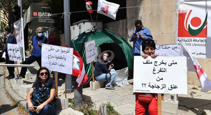 نفّذت اللّجنة التّمثيليّة للأساتذة المتعاقدين بالسّاعة في الجامعة اللبنانية، اعتصامًا عند مدخل السراي الحكومي، حيث تمّ نصب خيمة في المكان.