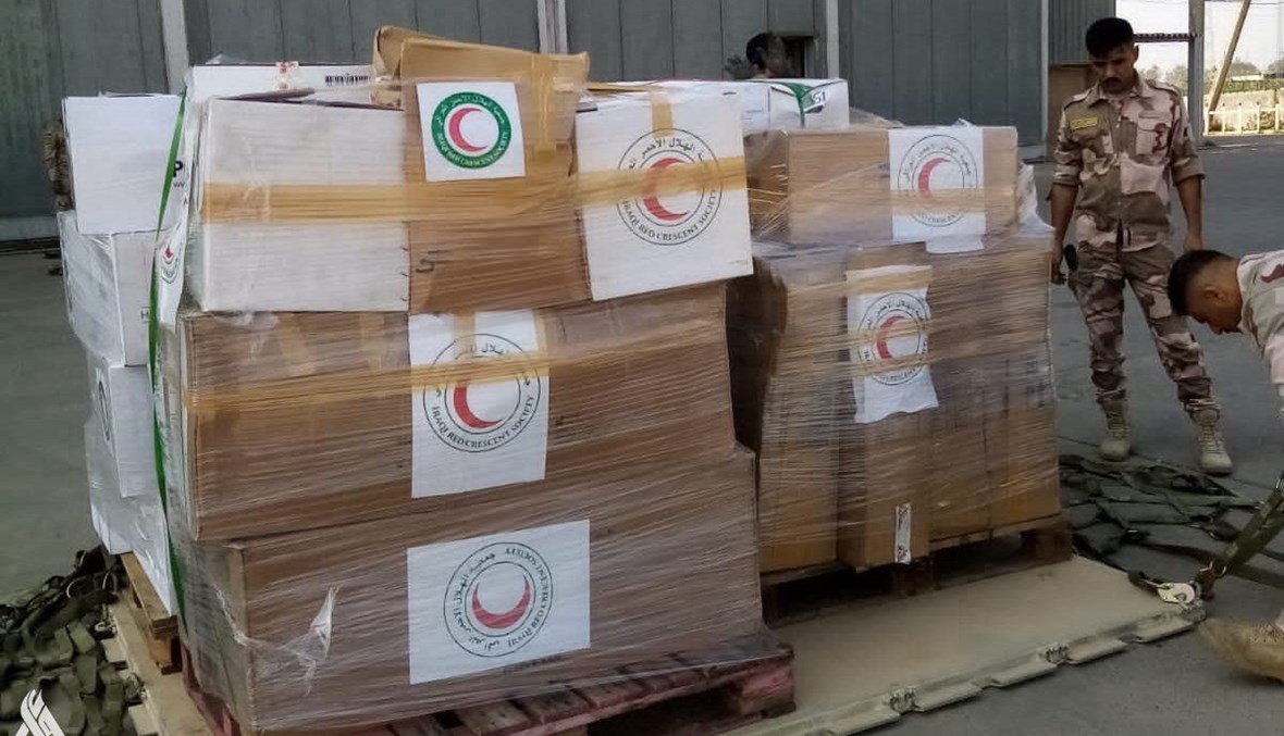 وأضاف أن" المساعدات أرسلت عبر رحلة جويّة من قبل طيران القوة الجوية العراقية نحو مطار العريش في جمهورية مصر العربية وتسلم من قبل الهلال الأحمر العراقي لنظيره المصري لتنقل بعدها لأهالي الشعب الفلسطيني في غزة".