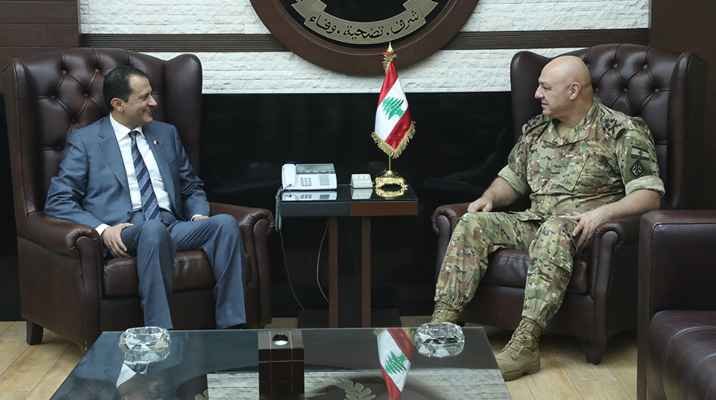 استقبل قائد الجيش العماد جوزيف عون في مكتبه في اليرزة سفير دولة قطر في لبنان سعود بن عبد الرحمن آل ثاني الذي أكد "استمرار...