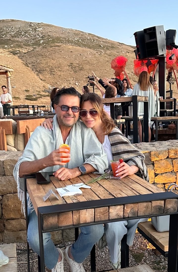 نشرت زوجة الفنان اللبناني راغب علامة "جيهان" مجموعة صور، وهي تحتضن زوجها في منطقة جبلية في لبنان.