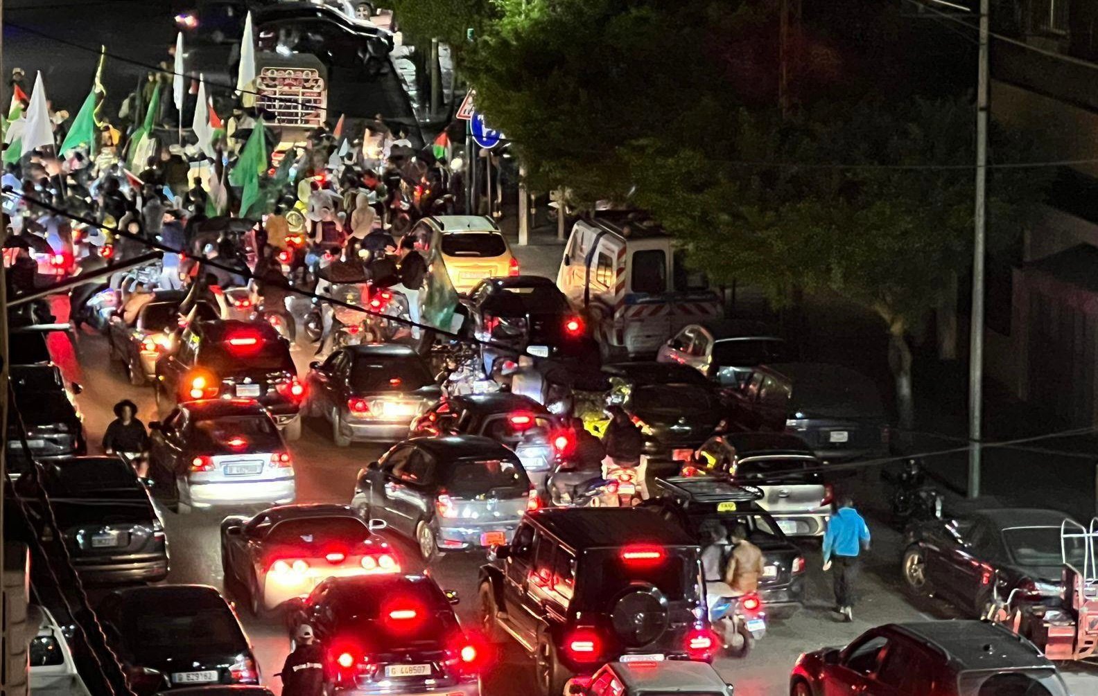 نفذت مجموعة من مناصري "حماس" مسيرة سيارة في شوارع بيروت لحظة الإعلان عن الإفراج عن الرهائن في غزة.