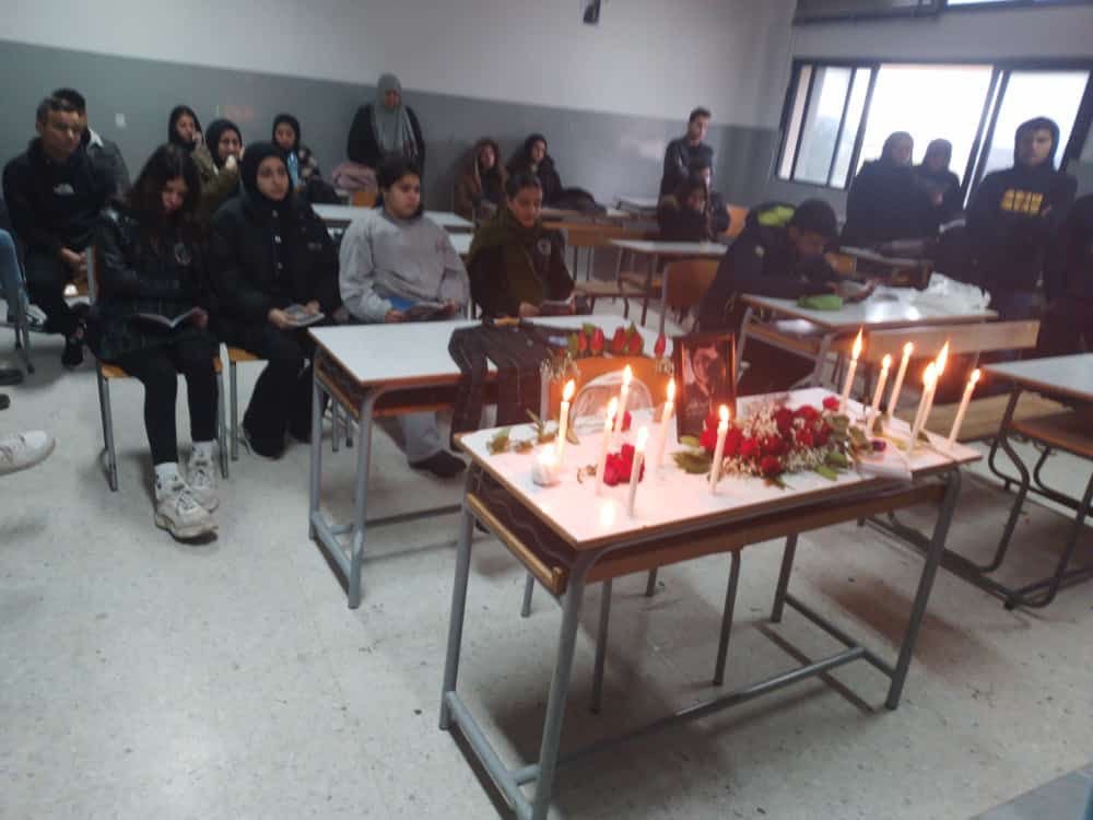 وفي التفاصيل، قام زملاء الشهيدة بإضاءة الشموع وتزيين مقعدها بالورود، مؤكدين أنها ستبقى في وجدانهم، والشهداء هم أحياء عند ربهم يُرزقون.