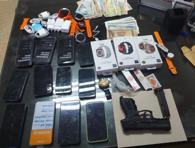 بتاريخ 07-02-2024 وبعد عملية رصد ومراقبة دقيقة، تمكّنت دوريات الشعبة من تنفيذ عملية متزامنة، نتج عنها توقيف الأول في محلة حناويه، والثاني في محلة عين بعال - صور. وبتفتيشهما، تم ضبط مسدس حربي، عدد من الهواتف الخلوية المسروقة من المحل في بلدة أنصار، مبالغ مالية، وأدوات تُستَخدَم في عمليات السرقة.