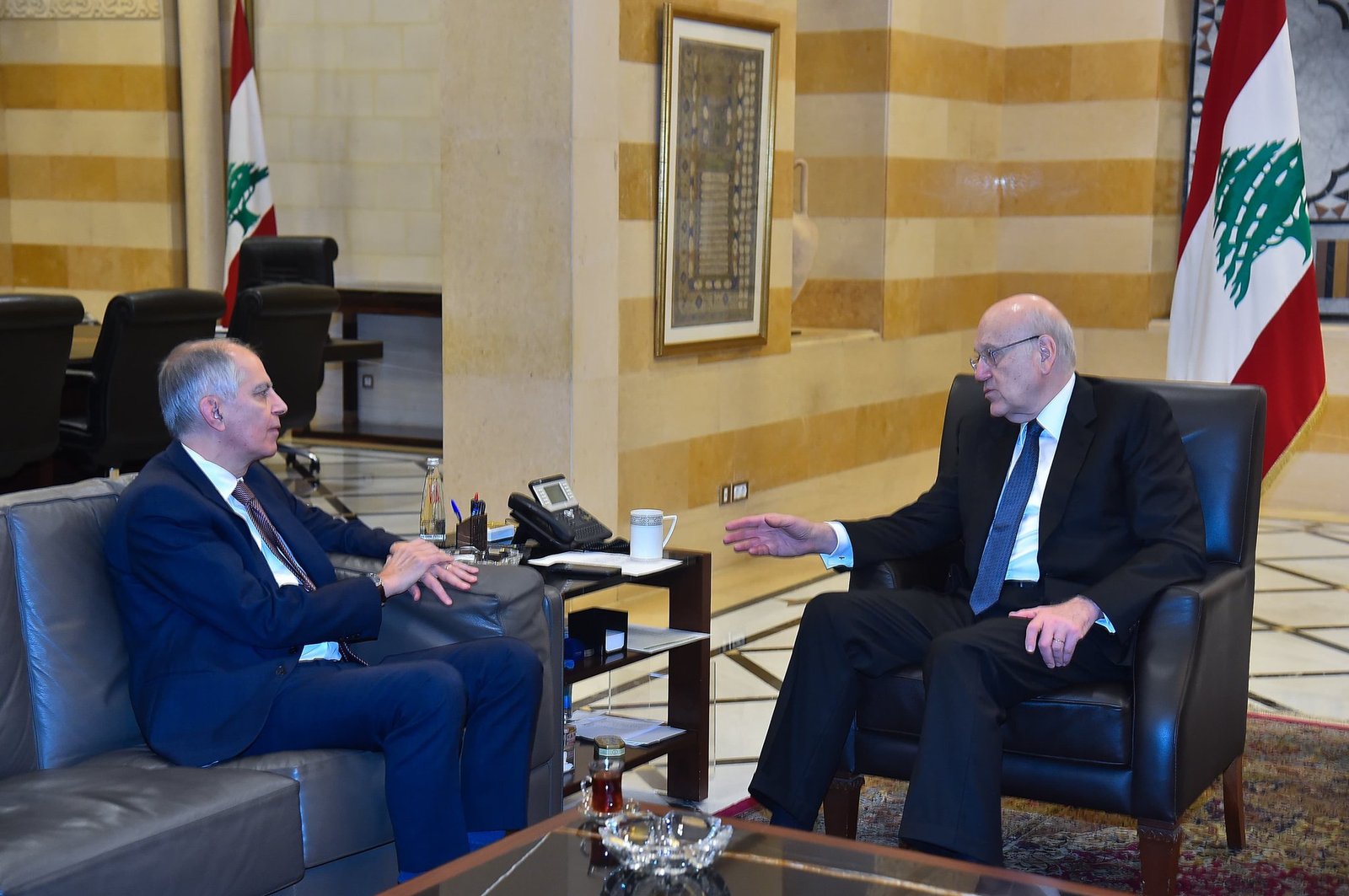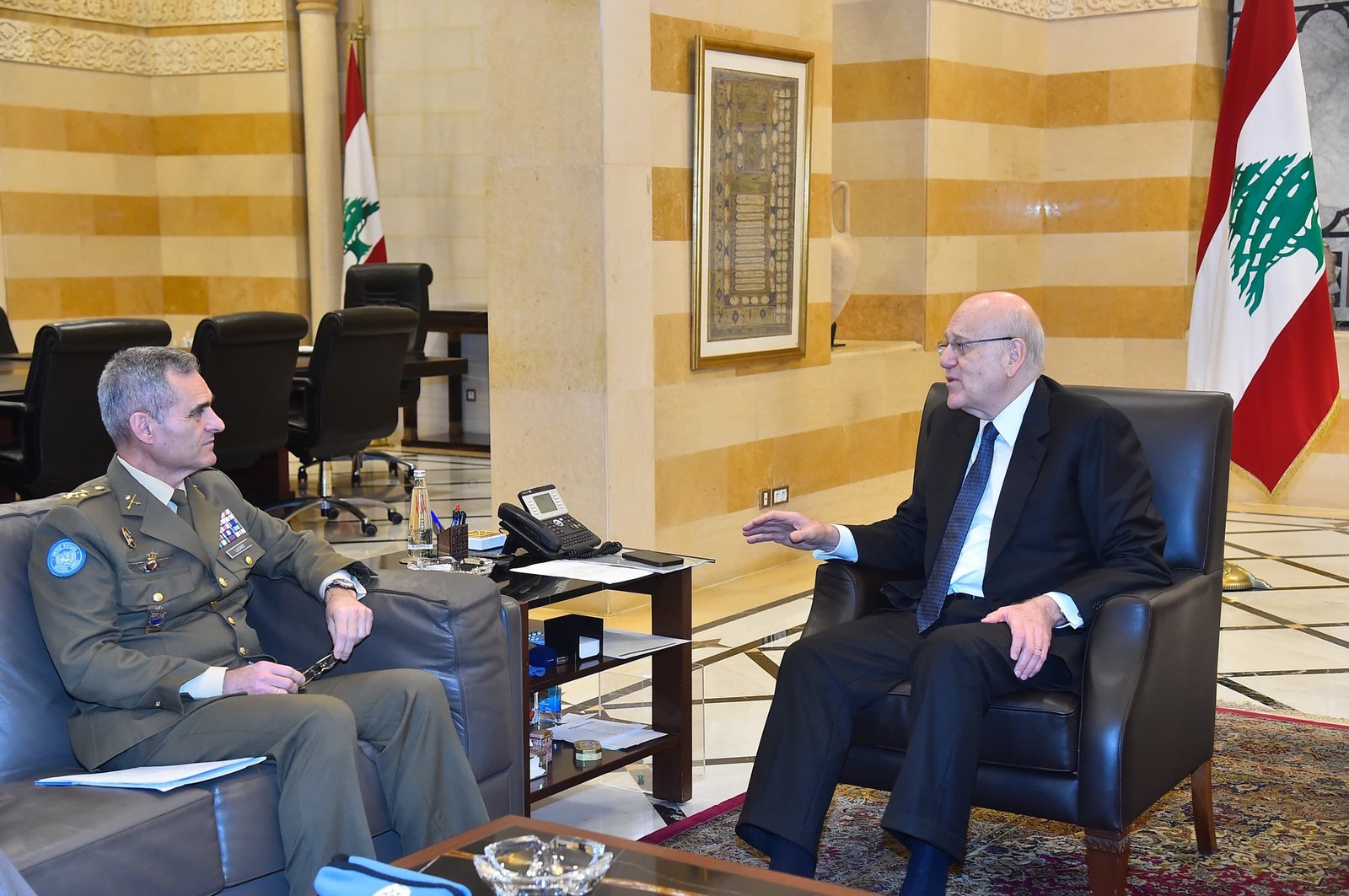 واستقبل رئيس الحكومة قائد قوات الأمم المتحدة العاملة في جنوب لبنان" اليونيفيل" الجنرال أرولدو لازارو وعرض معه الوضع في الجنوب والتعاون القائم بين الجيش وقوات" اليونيفيل".