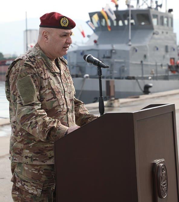 أكد قائد الجيش العماد جوزيف عون أن "الهبة ستساهم في تعزيز قدرات القوات البحرية وتطويرها، إضافة إلى مساعدتها في تنفيذ المهمّات الموكلة إليها في ظل التحديات التي تواجهها، بخاصة مكافحة الهجرة غير الشرعية عبر البحر، وتوفير الحماية الأمنية لمنصات النفط مستقبلًا".