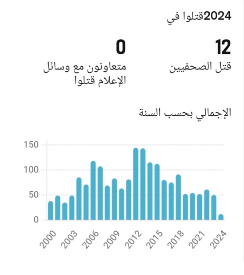 وأرفق التقرير بيانات تشير إلى عدد الصحفيين الذين قتلوا واعتقلوا من ١ يناير ٢٠٢٤.