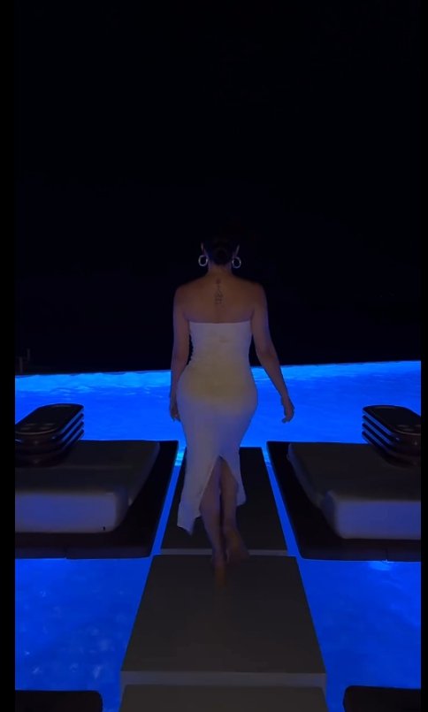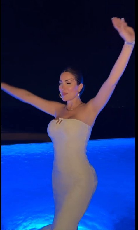 وظهرت نسرين في أحد الفيديوهات وهي تستمتع ليلًا بأجواء السهر في الجزيرة، حيث كانت ترقص بإثارة.