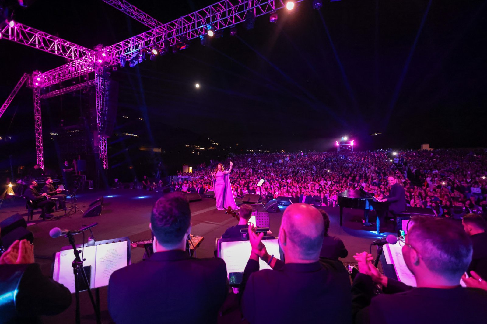 البداية كانت مع أغنية "وينك" وأشارت بالميكروفون للجمهور فتابع مغنيّاً بدلاً منها وأيضاً رافقها الجمهور غناء في أغنية "بصراحة".
