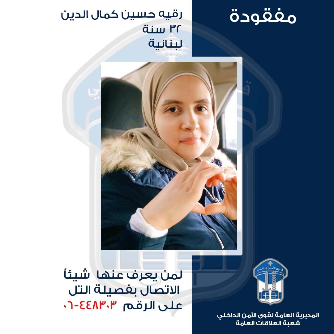 عمِّمت المديريّة العامّة لقوى الأمن الدّاخلي، بناءً على إشارة القضاء المختص، صورة المفقودة: