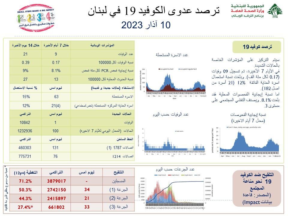 أعلنت وزارة الصحة العامة تسجيل 100 إصابة جديدة بكورونا وحالة وفاة واحدة في الساعات الـ24 الماضية