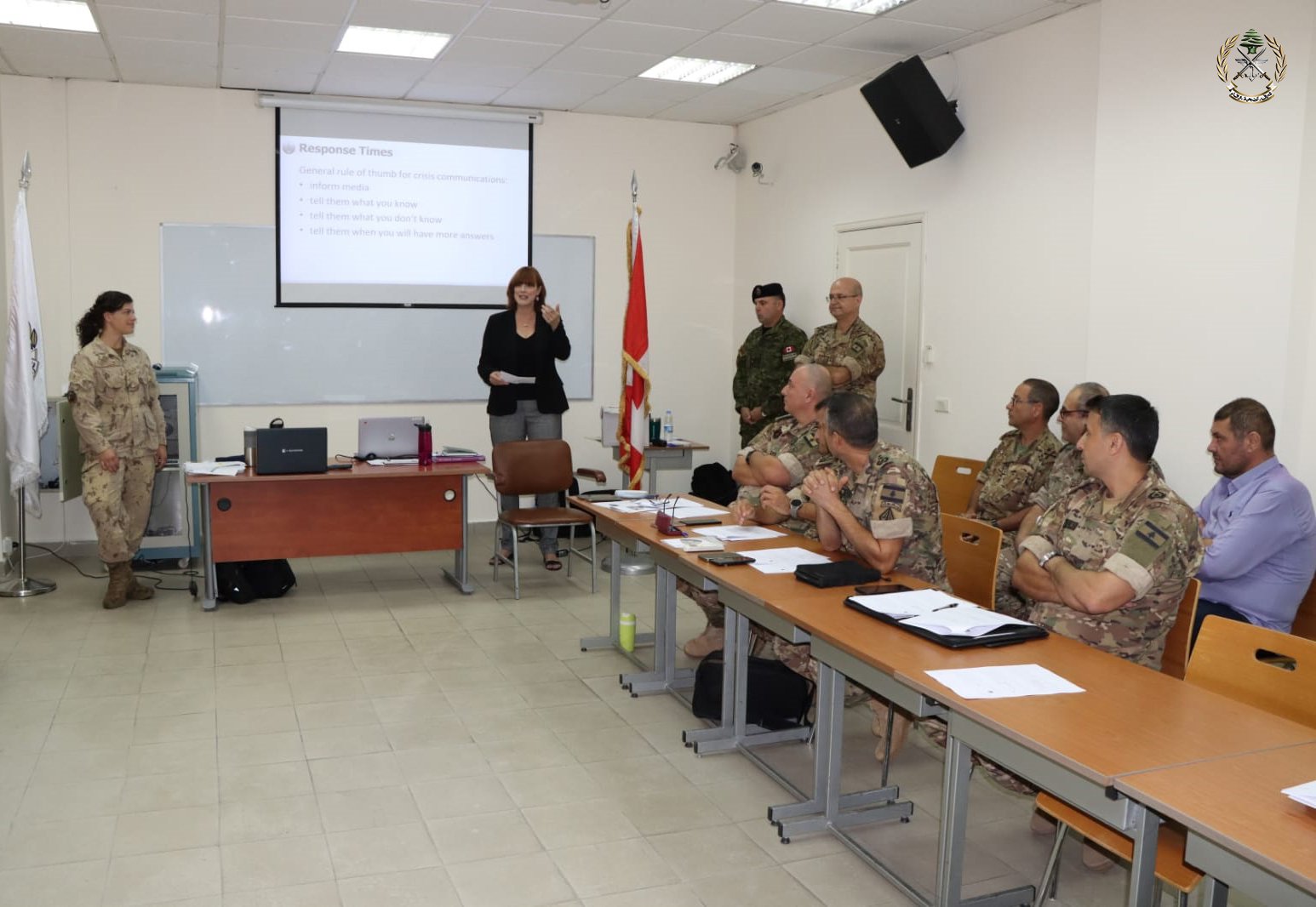 أعلنت قيادة الجيش اللبناني، أنّ "فريق التّدريب والتّعاون الكندي في لبنان، أقام ورشة عمل لعناصر من الجيش حول "السّرديّات والصّور في استراتيجيّة التّواصل"، في كليّة فؤاد شهاب للقيادة والأركان، بإشراف مديريتَي التّوجيه والتّخطيط للتّواصل الاستراتيجي"، مشيرةً إلى أنّ "السّفيرة الكنديّة Stefanie McCOLLUM، حضرت في زيارة تفقديّة لورشة العمل".