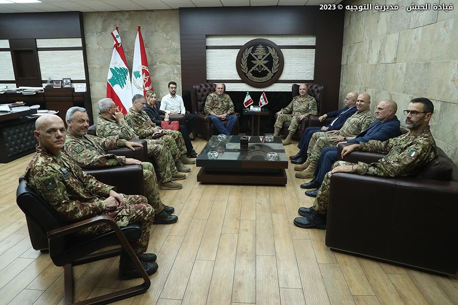 استقبل قائد الجيش العماد جوزيف عون في مكتبه في اليرزة وزير الدفاع الإيطالي Guido CROSETTO ترافقه السفيرة الإيطالية في لبنان السيدة Nicoletta BOMBARDIERE مع وفد مرافق، وتناول البحث الأوضاع العامة في البلاد والتطورات على الحدود الجنوبية.